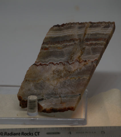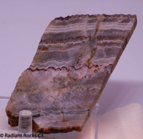 Arizona Amethyst  lapidary cabochon slab 2.4 oz  (70 grams) measuring ~3" x 2" x 5/16".  Good banding, sun baked amethyst with a central seam.