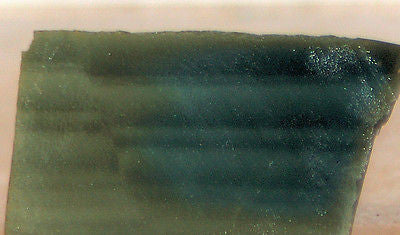 This is a 0.8 ounce heel slab of Imperial Jasper measuring ~ 1.25" x 1" x 1/4". Beautiful green and light blue material with great stripe patterns to cut some fun cabochons. This Imperial Jasper has some excellent areas to work into fantastic cabs.